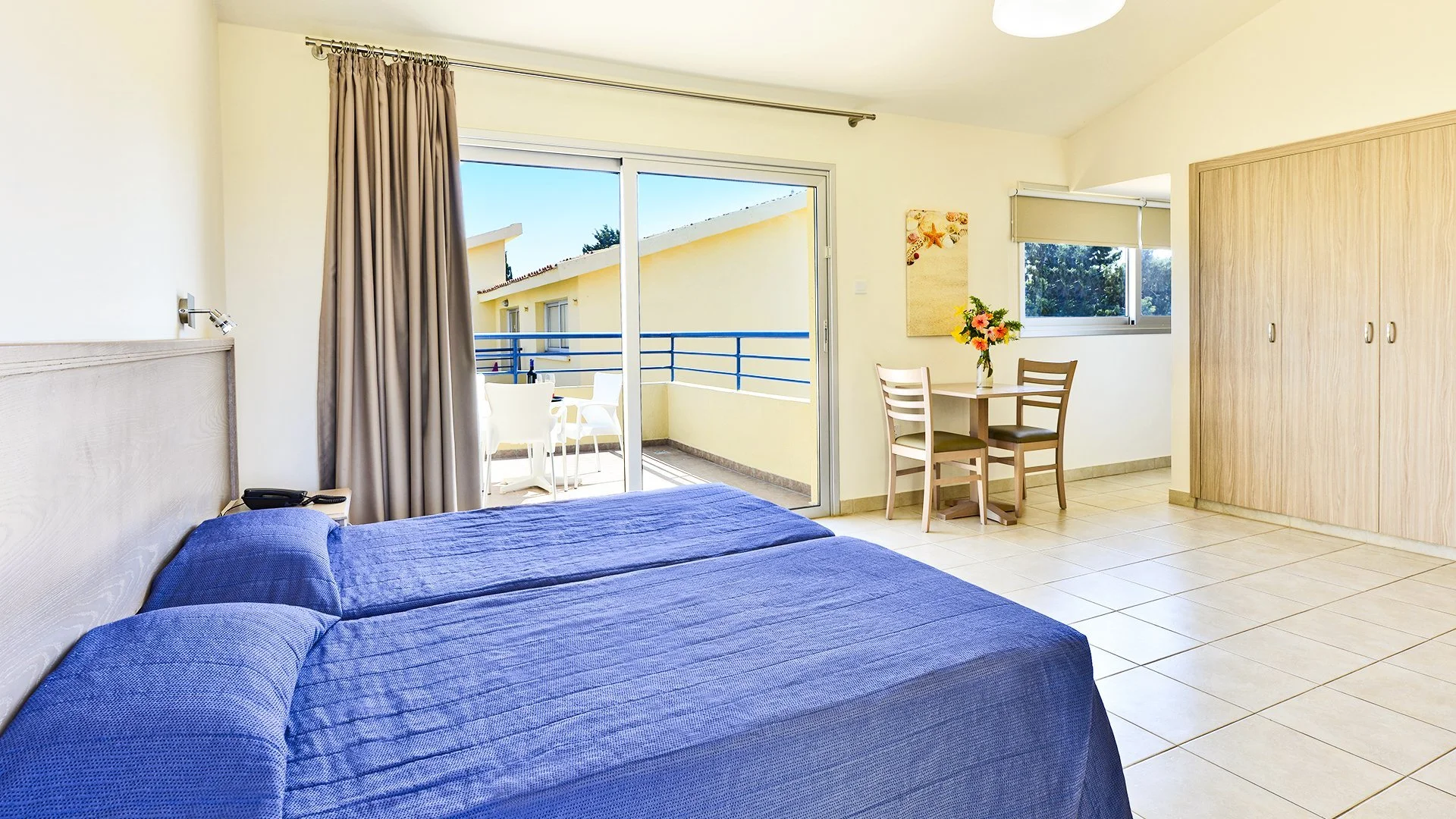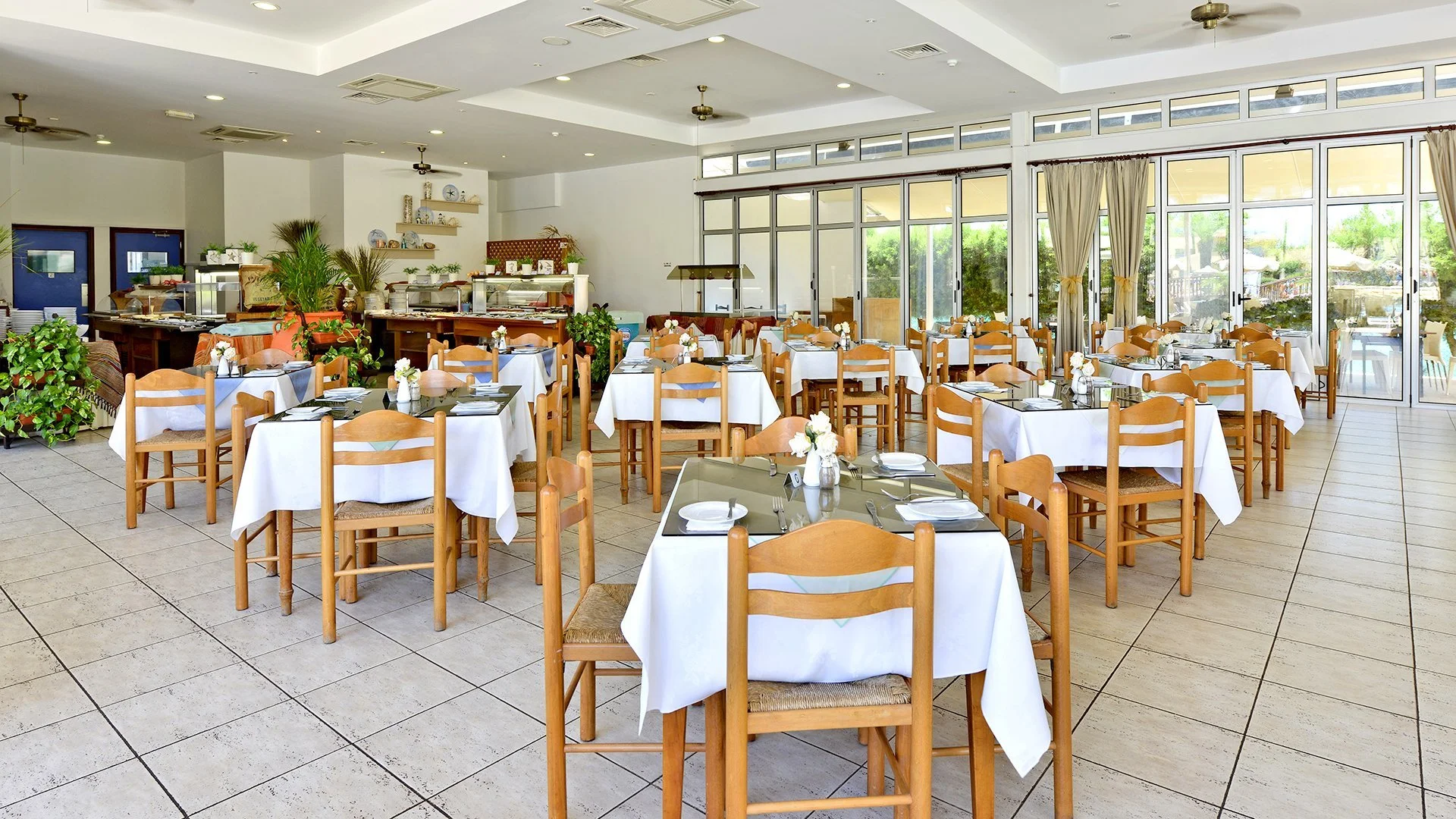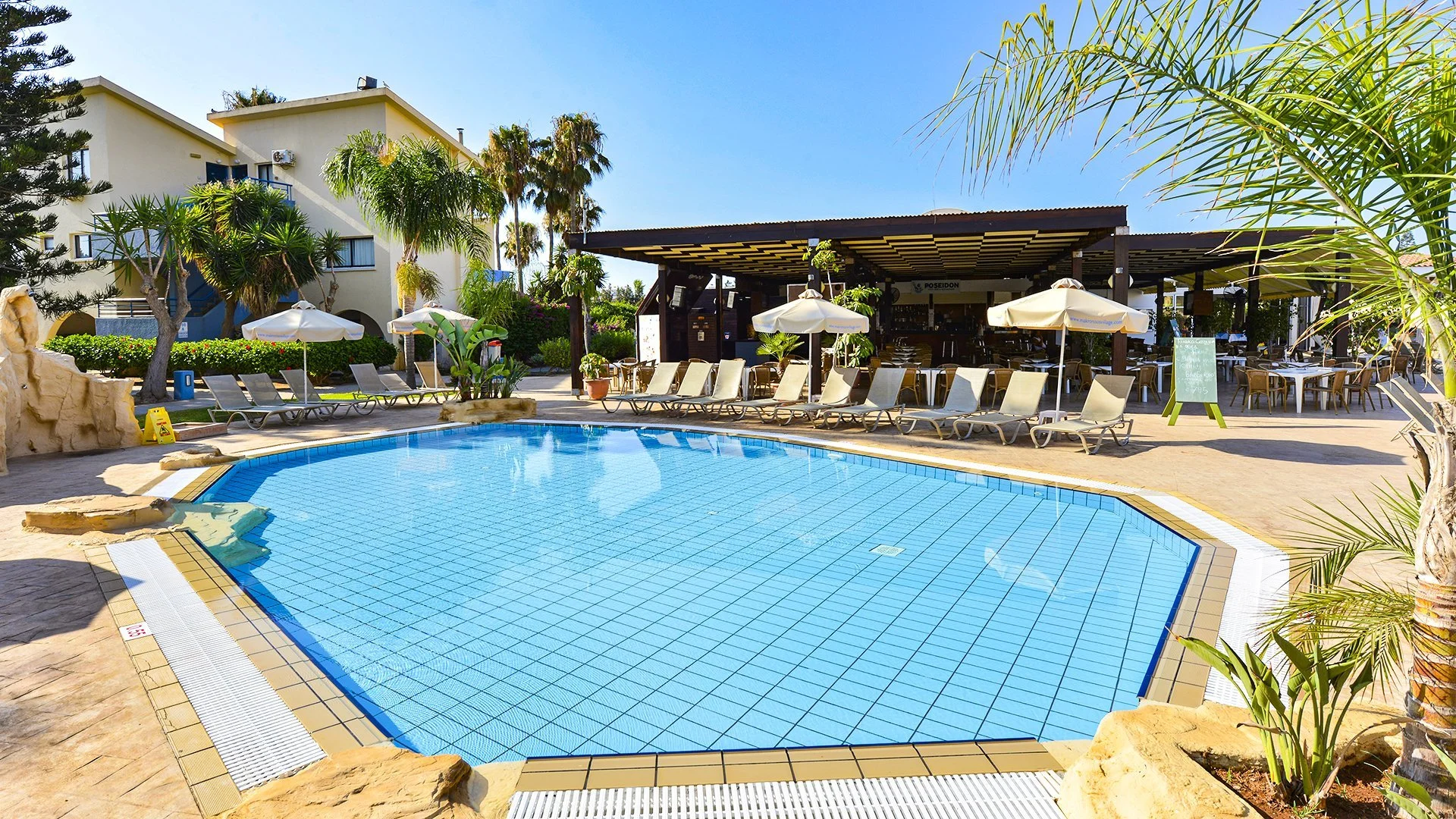 Kolmetärnihotell, regulaarselt renoveeritud, 122 tuba, peahoone, 24 hoonet - buffet-toit, Küprose köök, Poseidon - à la carte menüü, Küprose ja rahvusvaheline köök. Poseidoni baar; valuutavahetus vastuvõtus, parkla, minimarket, suveniiripood; aed; tasuta WiFi; lisatasu eest: seif vastuvõtus (umbes 10 EUR/nädal), lastehoid, pesumaja, auto- ja jalgrattarent; aktsepteeritakse krediitkaarte: MasterCard, Visa, American Express, Diners Club.