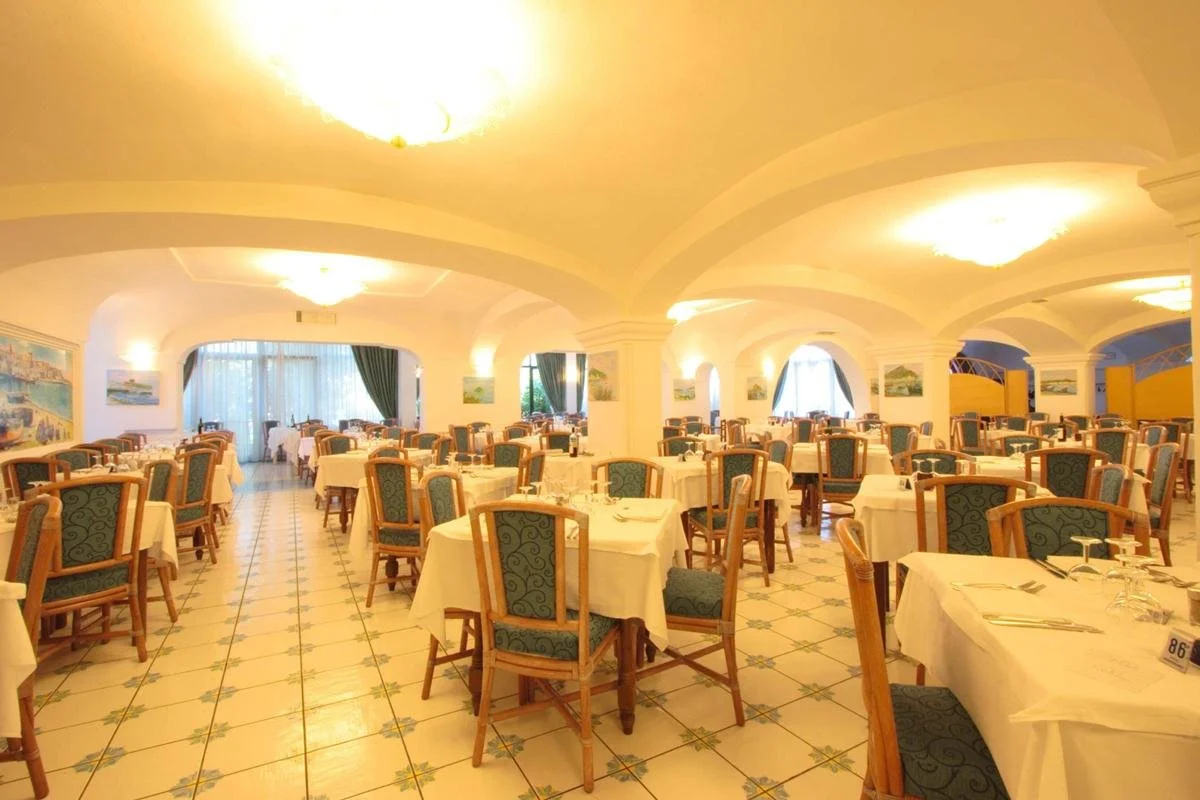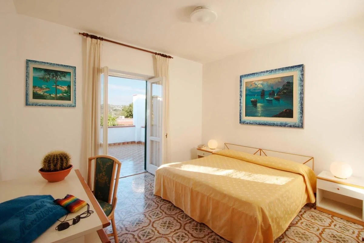 Ischia saarel, mäe peal, PANZA külas, umbes 300 m kaugusel poodidest, restoranidest ja baaridest, umbes 1 km kaugusel Giardini Ravino botaanikaaiast, umbes 2 km kaugusel Giardini Poseidon Terme'ist – suurim termiline park saarel, kus on 20 basseini, umbes 6 km kaugusel Lacco Amenost; bussipeatus umbes 200 m kaugusel hotellist; umbes 54 km kaugusel Napoli lennujaamast (transfeer bussiga/minibussiga ja praamiga).