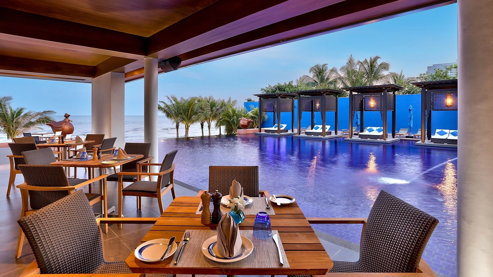 Luksuslik ja elegantne, asub otse liivaranna ääres, kus kõrged palmid kõiguvad maalilise Tai lahe taustal, on ideaalne ettepanek unustamatuks puhkuseks tõeliselt eksootilises stiilis. Ümbritsetud suurepäraselt kujundatud ja hooldatud aiaga, pakub see erakordset atmosfääri eemal saginast ja mürast. Kaasaegsed ja stiilsed interjöörid on kujundatud hoolikalt kõige väiksemate detailide järgi, et rõõmustada isegi kõige nõudlikumaid külalisi, ning avarad ja mugavad toad, sealhulgas privaatse basseiniga, garanteerivad lõõgastumise ja puhkuse pärast intensiivset päeva. Hotelli tugevateks eelisteks on infinity basseinid, mida valitakse meelsasti jahutamiseks ja lõõgastumiseks, ning katuseterrass, kust saab imetleda hingematvaid vaateid ümbrusele. Proovige maitsvaid kohalikke eripärasid ühes kahest restoranist, jooge värskendavat jooki valitud baaris ja õhtul minge traditsioonilisse Tai massaaži – siin on kõik atraktsioonid käeulatuses!