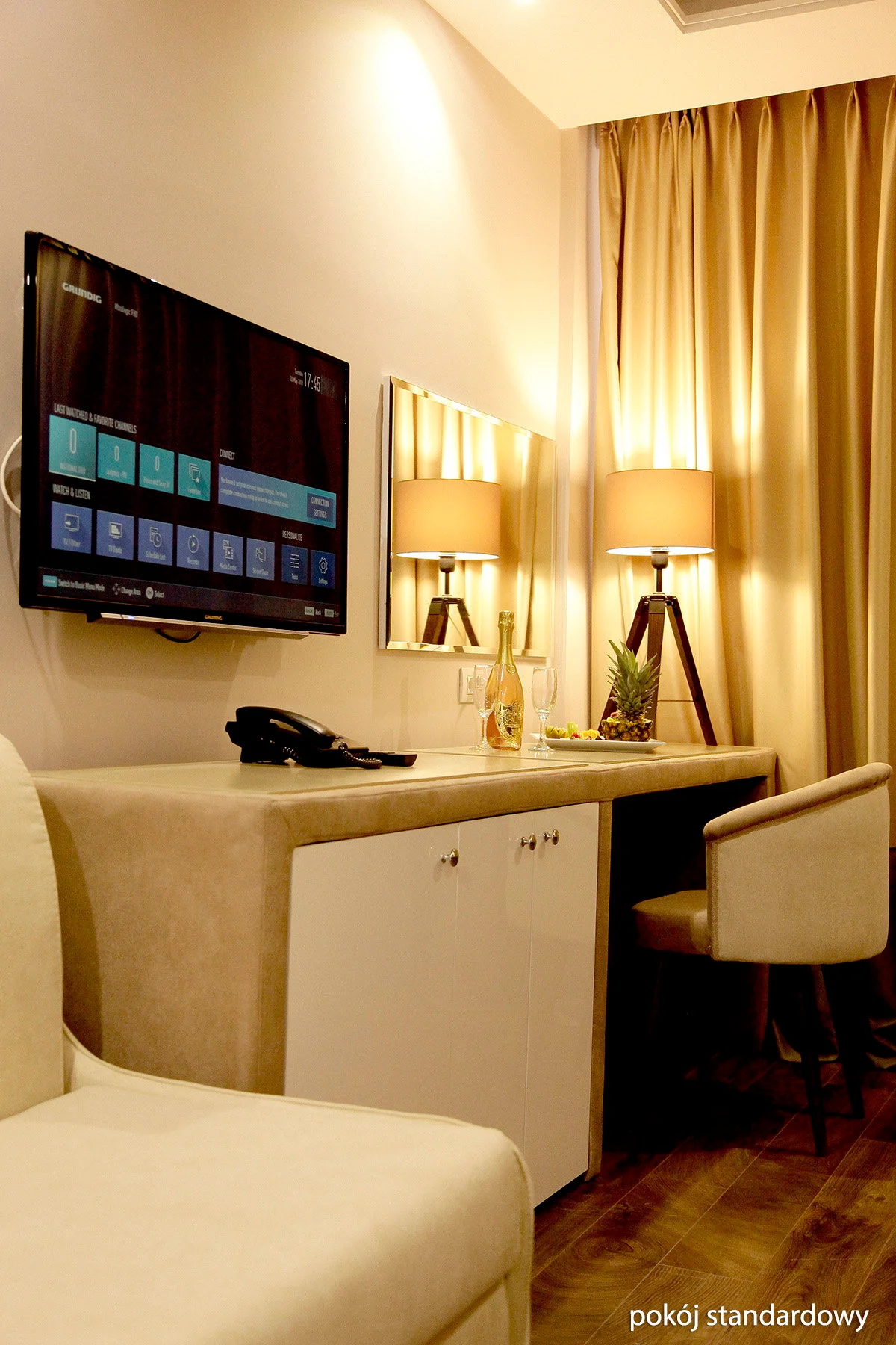 Standard: Kaheinimesevoodiga elegantne tuba, umbes 24 m², individuaalselt reguleeritav konditsioneer, vannituba (dušš, WC, juuksekuivati), traadita internet, satelliittelevisioon, telefon, seif, külmkapp, tasuta beebivoodi kuni 2-aastasele lapsele, kui tellitud enne saabumist.
