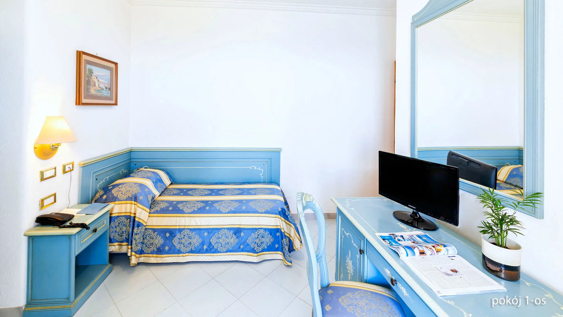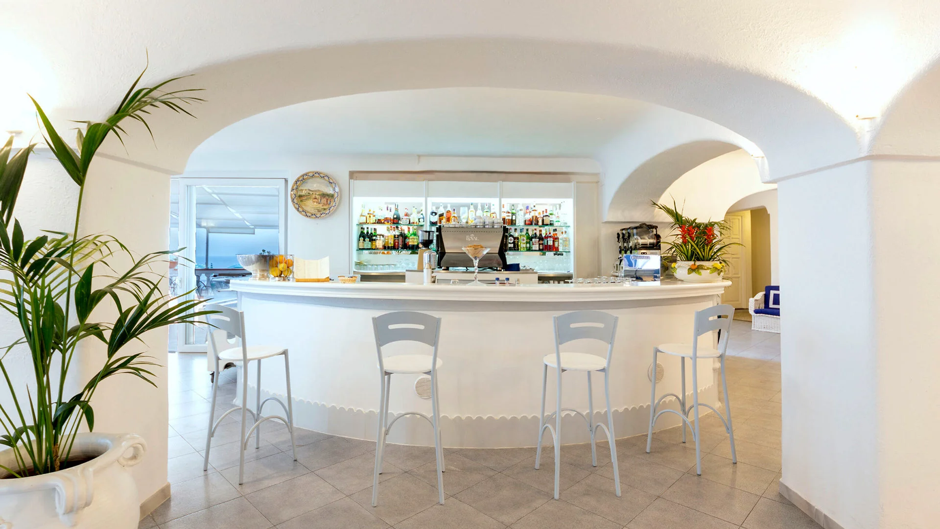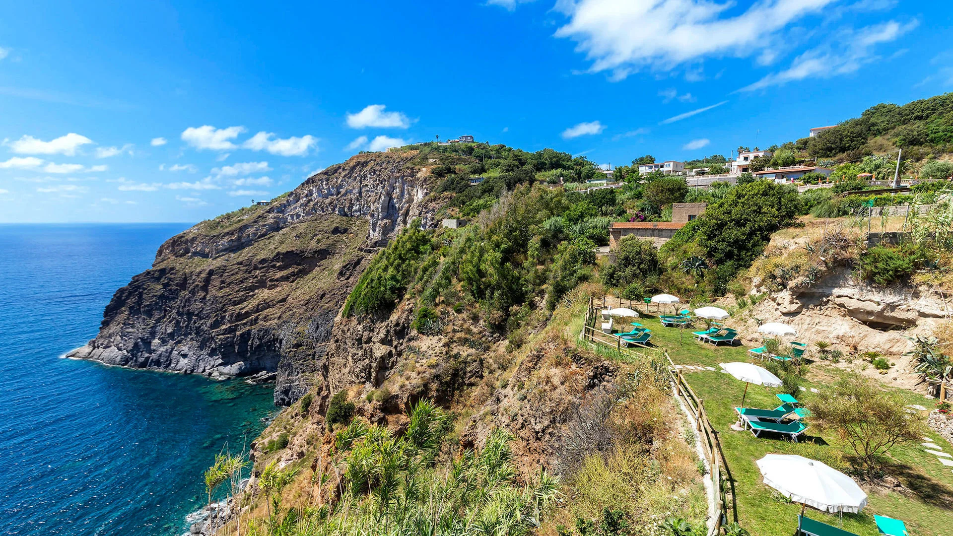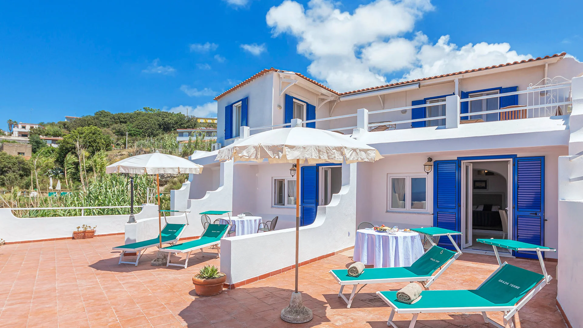 kaljul, u. 5,5 km kaugusel FORIO keskusest, u. 1,3 km kaugusel poodidest ja baaridest, u. 6 km kaugusel Forio sadamast, u. 3,5 km kaugusel Giardini Ravino botaanikaaiast, u. 4 km kaugusel Giardini Poseidon Termest - saare suurimast termipargist 20 basseiniga; u. 52 km kaugusel Napoli lennujaamast (transport bussi/minibussi ja parvlaevaga); tasuta hotellibuss Forio kesklinna (graafikujärgselt).