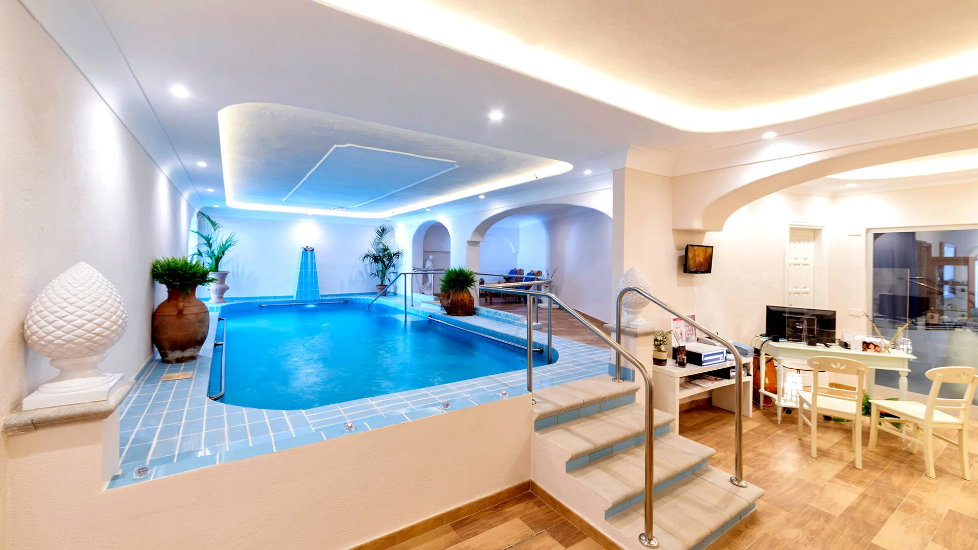 bassein, ristkülikukujuline, magevesi, u. 170 m2, tasuta päikesevarjud ja lamamistoolid basseini ääres; SPA-keskus: sisebassein, magevesi, u. 30 m2, tasuline: jõusaal, jooga, Türgi aurusaun, massaažid, hoolitsused; tenniseväljak u. 2,5 km kaugusel hotellist (väline pakkumine).