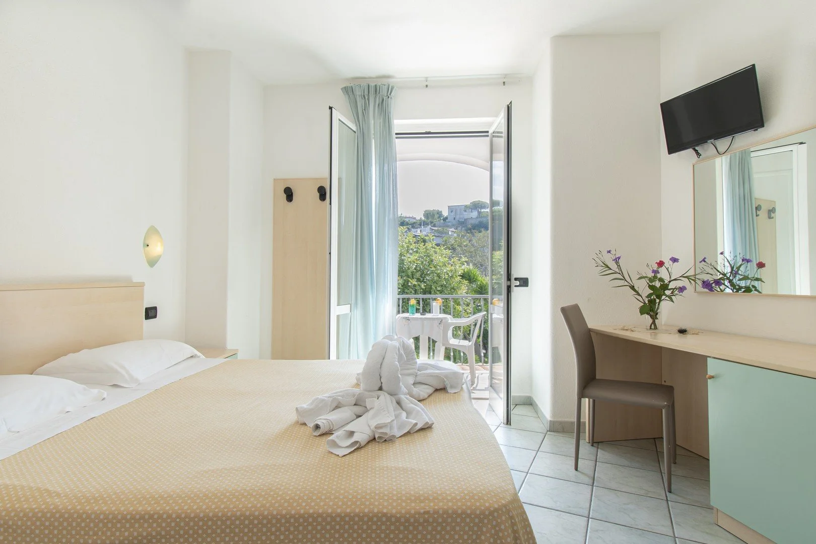 Ischia saarel, umbes 1 km kaugusel FORIO keskusest, umbes 800 m kaugusel restoranidest, baaridest ja poodidest, umbes 1 km kaugusel botaanilisest aiast Giardini Ravino, umbes 2 km kaugusel Chiaia keskusest, Forio sadamast ja Giardini Poseidon Terme'ist – suurim termiline park saarel, kus on 20 basseini, umbes 6 km kaugusel Lacco Ameno'st; bussipeatus umbes 80 m kaugusel hotellist; umbes 53 km kaugusel Napoli lennujaamast (transfeer bussiga/minibussiga ja praamiga).
